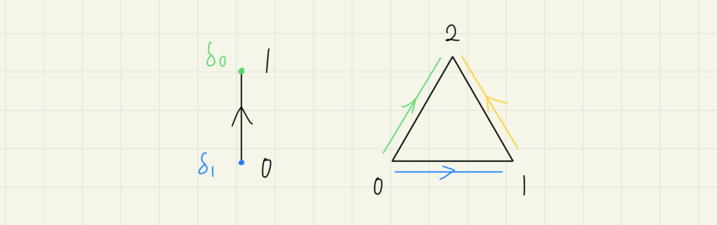 這些 morphism 可以用一類特殊的 maps 組出來,叫做 face maps,舉例來說